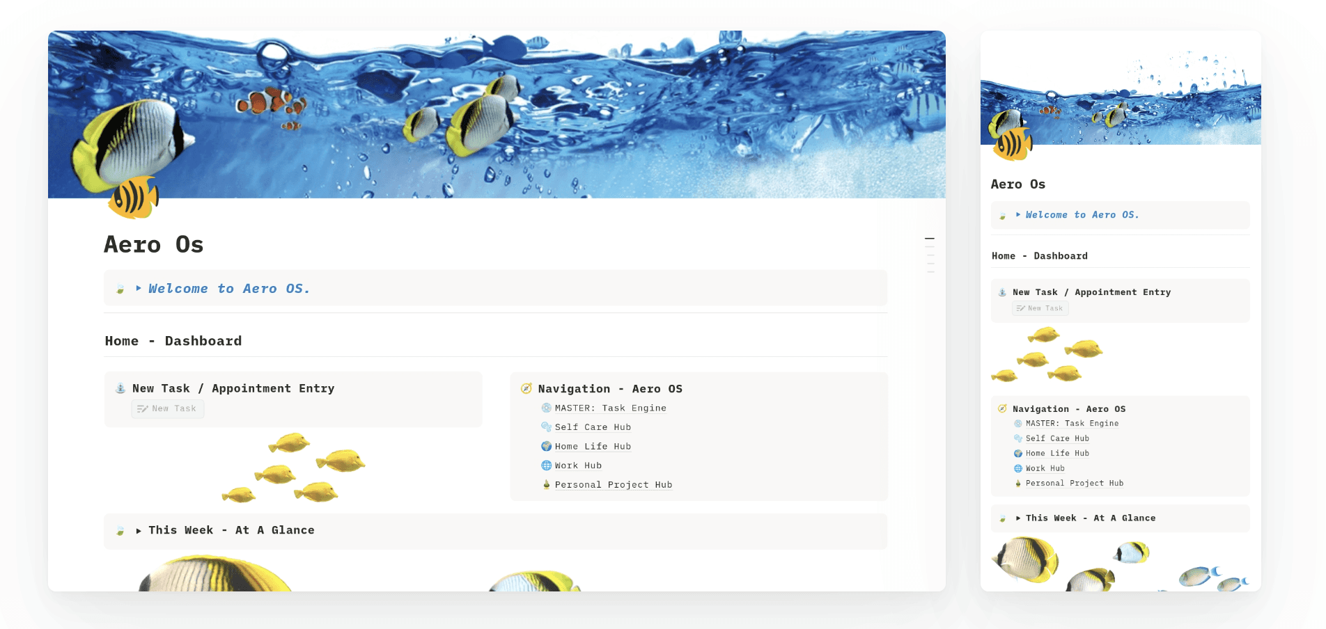 Experience the optimistic futurism of Aero OS - a premium Notion workspace inspired by the vibrant era of Frutiger Aero. Organize your world into 4 high-performance Hubs: Work, Home, Projects, and Self-Care. A sophisticated yet light system for a clearer digital life.